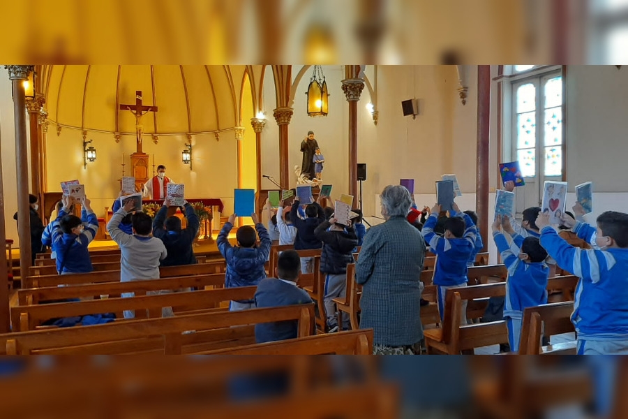 La liturgia se realizó en la capilla del colegio y luego tuvieron un compartir. Agradecemos a las familias por apoyar esta actividad, con los cuadernos preparados para los encuentros y la colaboración para sus bolsitas de convivencia.